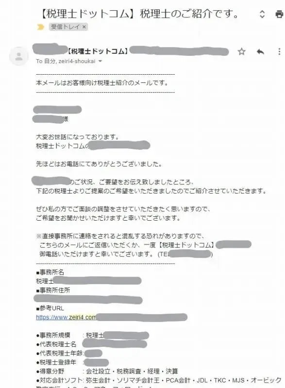 「営業が強い」と書きましたが、僕は、どんどんと電話やメールで税理士紹介を進めてくれるので、良いことだと感じました。